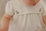 Designed for cherished celebrations, this sophisticated romper features exquisite embroidered details that exude timeless grace. Wrapped in luxuriously soft fabric, it's the ideal choice for creating memorable moments in style. Pair it with the CROPPED CARDIGAN for an adorable set!