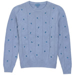 Elevate any occasion with this beautifully embroidered knit top in rich blueberry tones. The delicate needlework adds an artistic touch that transforms everyday styling into something special. Versatile yet refined, it's the perfect piece for layering with elegance and grace.