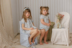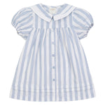 Classic sailor-striped dress combining nautical charm with refined elegance. The timeless striped pattern and polished construction make it an ideal choice for young girls who appreciate sophisticated style for formal occasions and special celebrations.