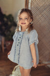 Meet your new favorite—a beautiful bloomer with a charming tab detail that'll have your little one looking absolutely precious. Pretty, comfy, and ready for all of life's sweet moments.